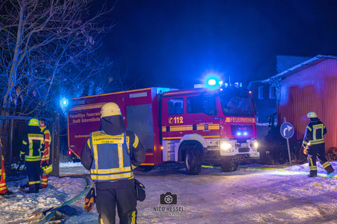 Der Wehrführer der Freiwilligen Feuerwehr, der direkt gegenüber des Hofes wohnt, wurde durch das Geräusch aufmerksam. Als er nach draußen trat, brannte der Stall bereits in voller Ausdehnung. Die Flammen hatten sich innerhalb kürzester Zeit über das gesamte Gebäude ausgebreitet. Umgehend wurde Großalarm ausgelöst.